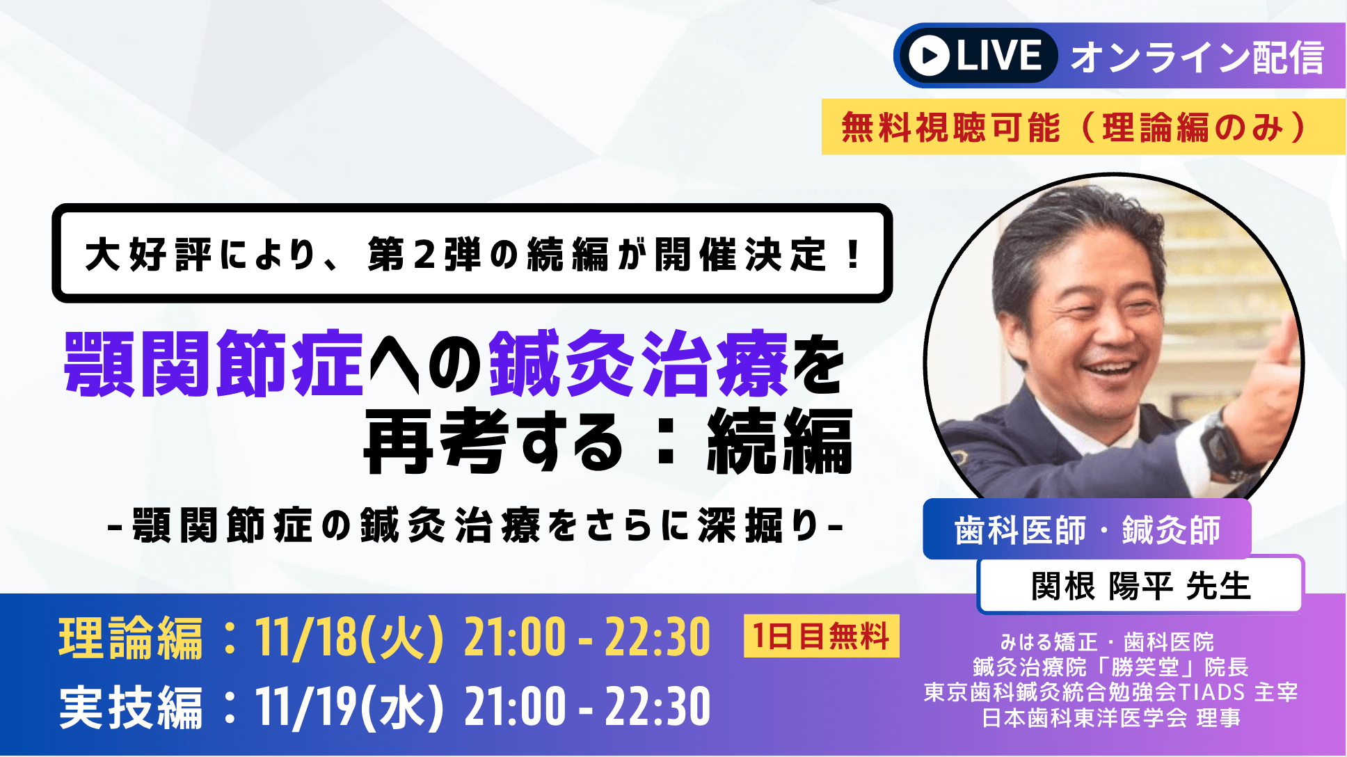 前回ご好評をいただいた「顎関節症への鍼灸治療セミナー」。